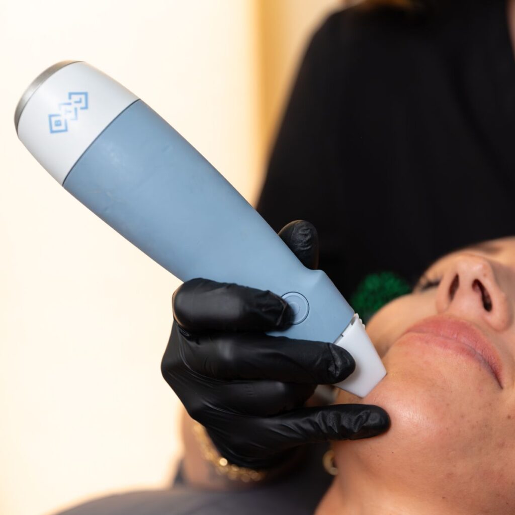 Exion is an advanced, non-surgical facial treatment that combines radiofrequency (RF) energy and targeted ultrasound technology to tighten skin, improve texture, and stimulate natural collagen production without needles or downtime.